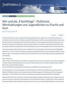Flucht und Asyl sind zwei Megathemen unserer Gegenwartsgesellschaft. In der Öffentlichkeit werden sie seit mehreren Jahren kontrovers diskutiert – doch wie denken junge Menschen hierüber?